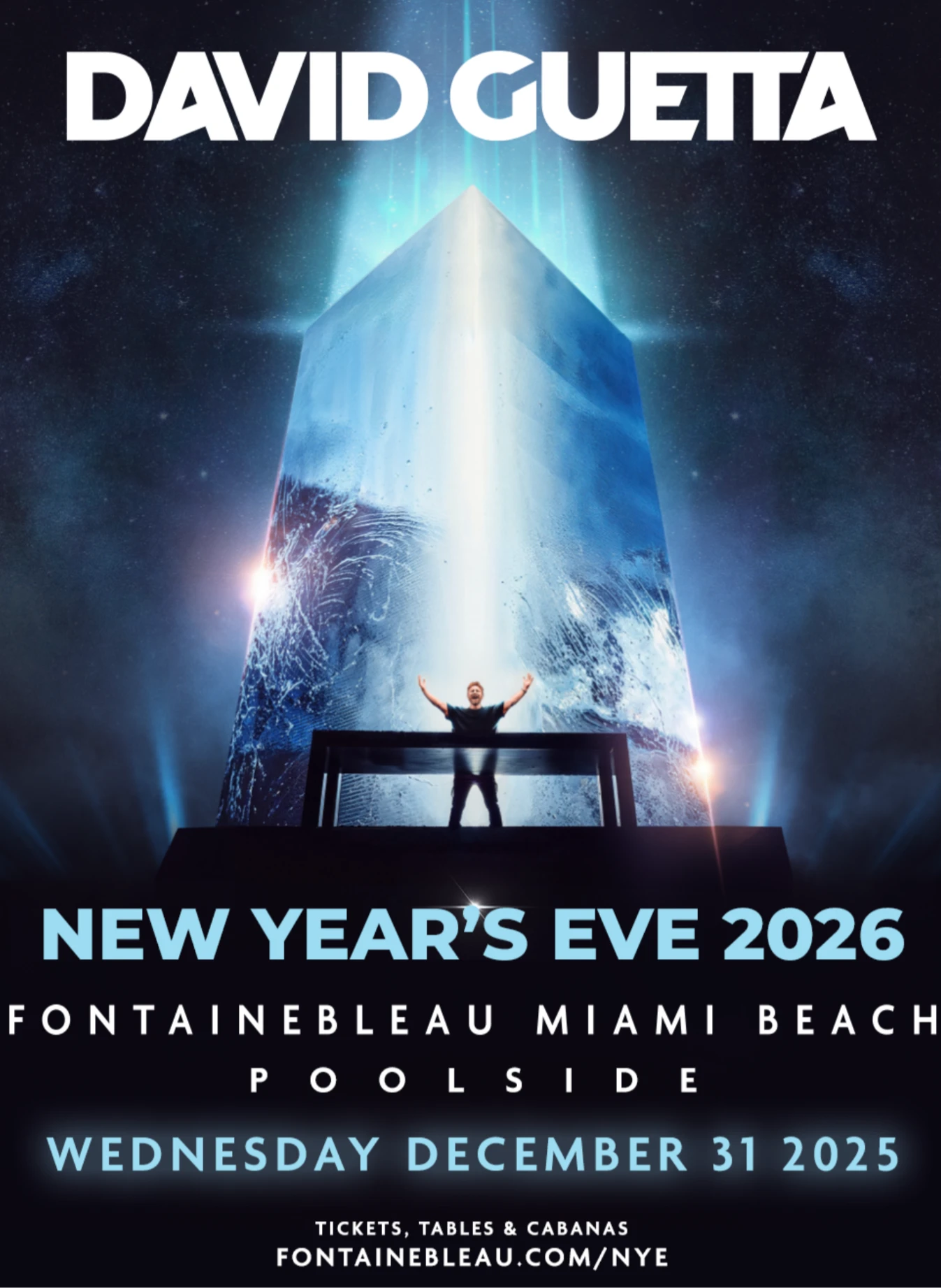 Fontainebleau Miami Beach is thrilled to welcome legendary DJ David Guetta for a poolside 2025 sendoff to remember. Revel in a night of superstar live entertainment, premium dining, VIP table packages, and a family experience that leaves no excuses for staying home. Experience the energy of David Guetta’s globally acclaimed Monolith show, featuring cutting-edge visuals and stadium-level production.