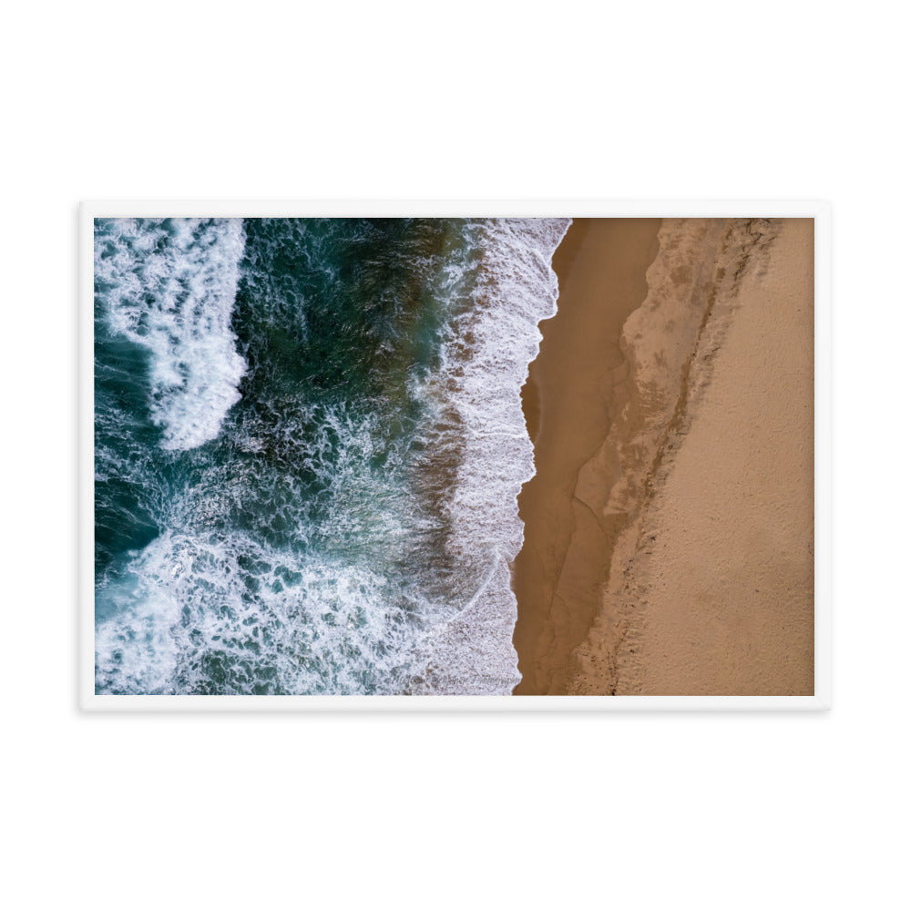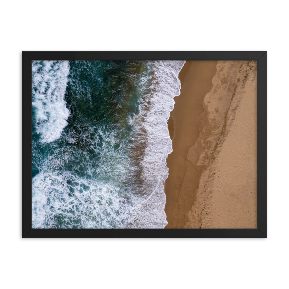 I came to this beach for the surfers. I left with a stellar pic of its rip current. This is taken at the secluded Domes Beach. The island's west side of Puerto Rico is a trip where you can see a variety of landscapes. A true honor to experience the beauty and its people, and I saw a whale. Framed poster printed on high-quality paper, with a partly glossy, partly matte finish.