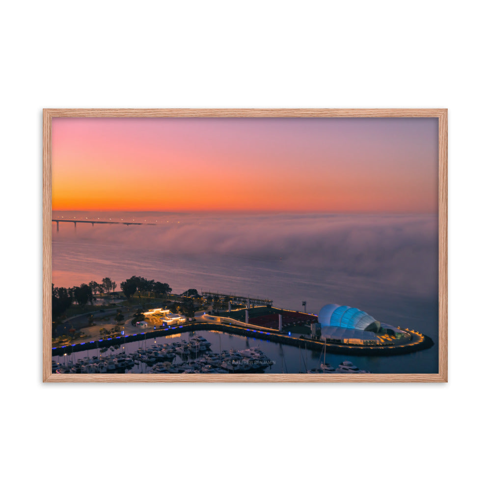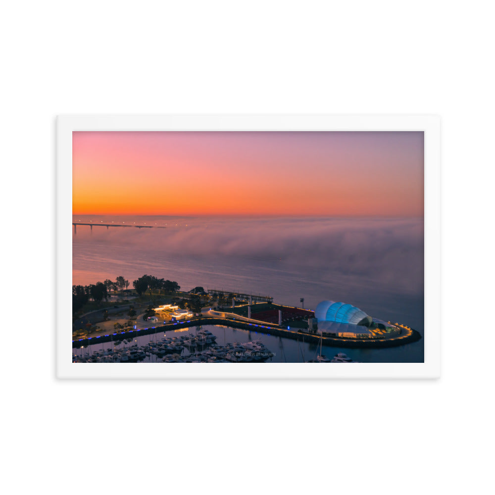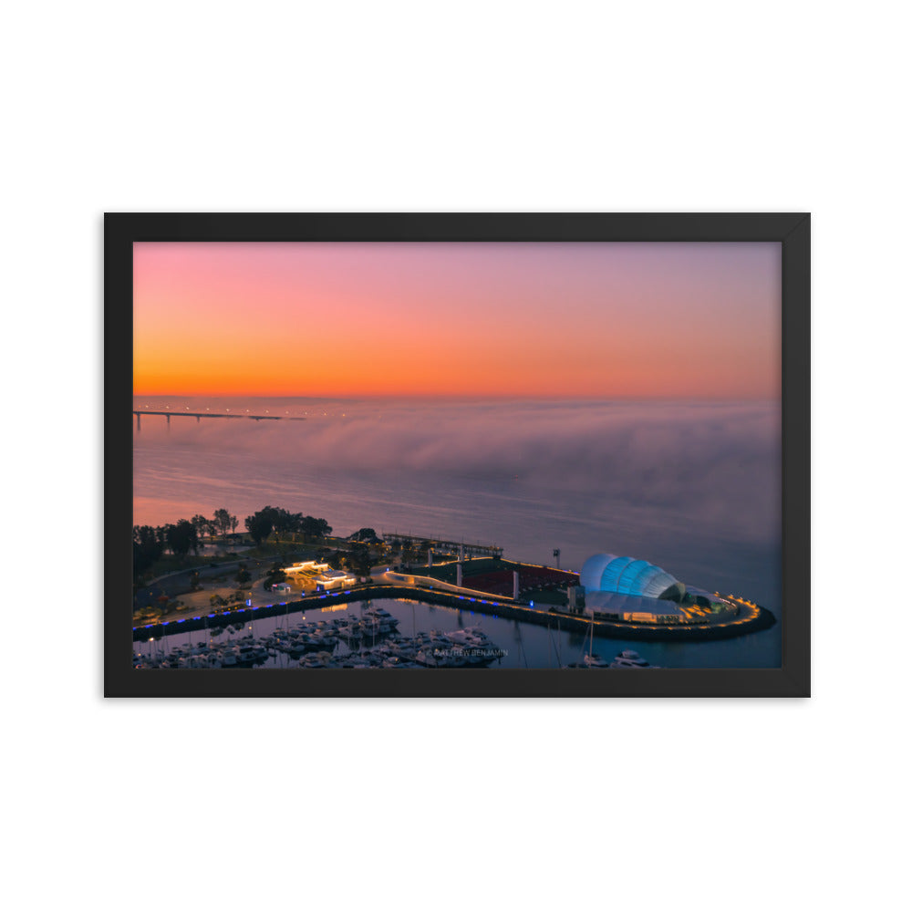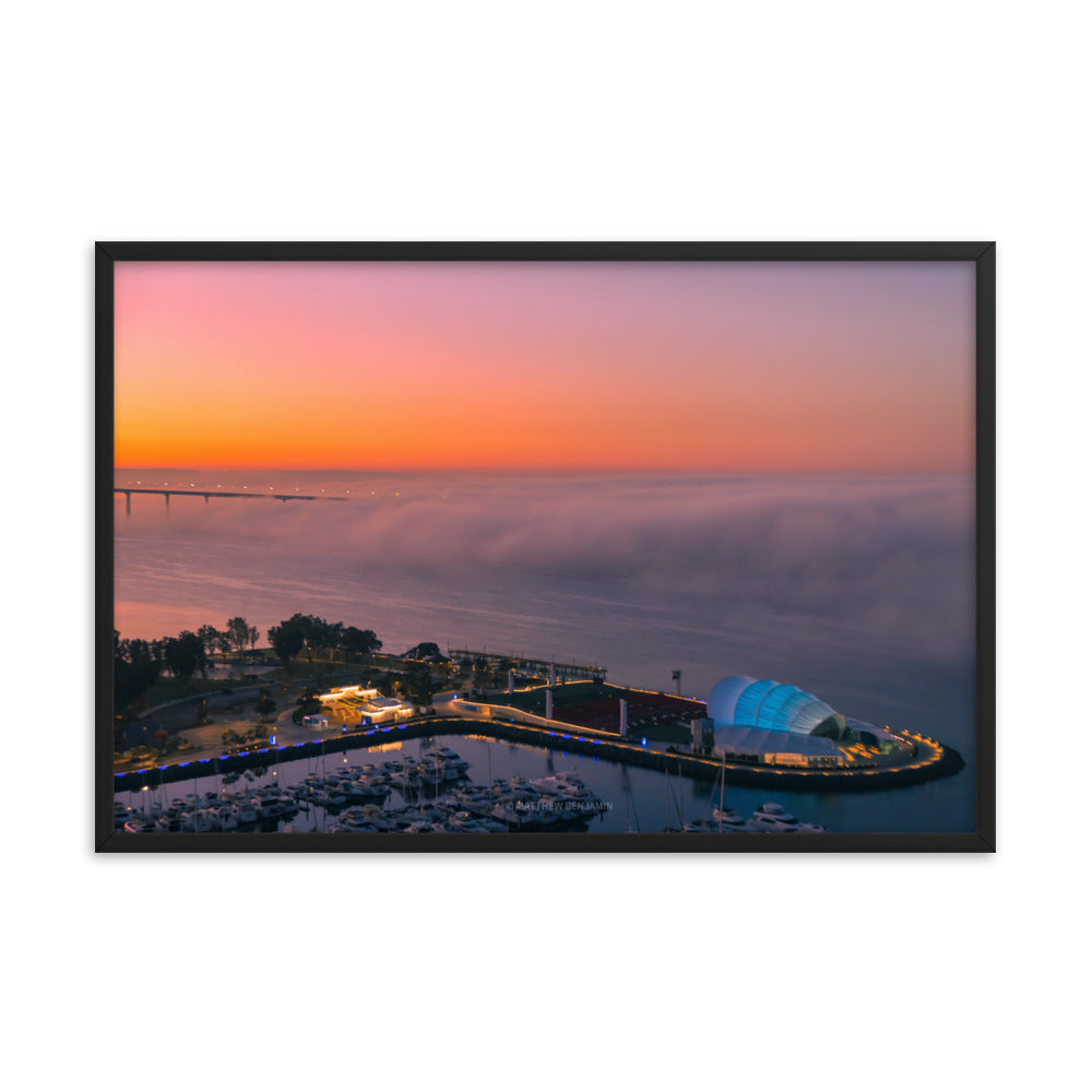 This amphitheater awaits the fog to roll in. This was taken in San Diego next to its beautiful marina area. I walked right up to this amphitheatre and it is much bigger closeup. It was an incredible area with the boats decorated with Christmas lights, especially for Christmas about to be blanketed with the dense Christmas day fog.