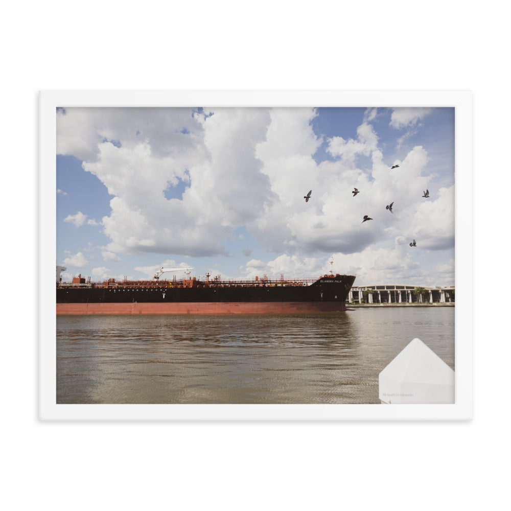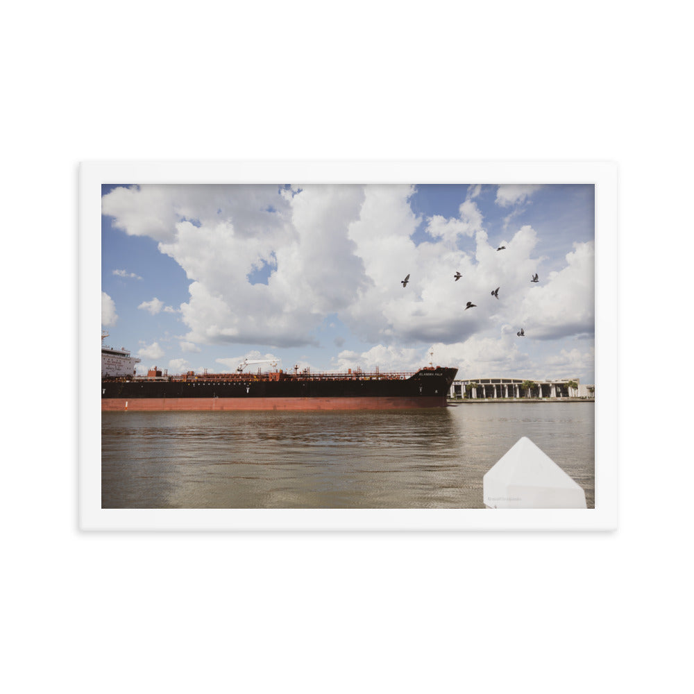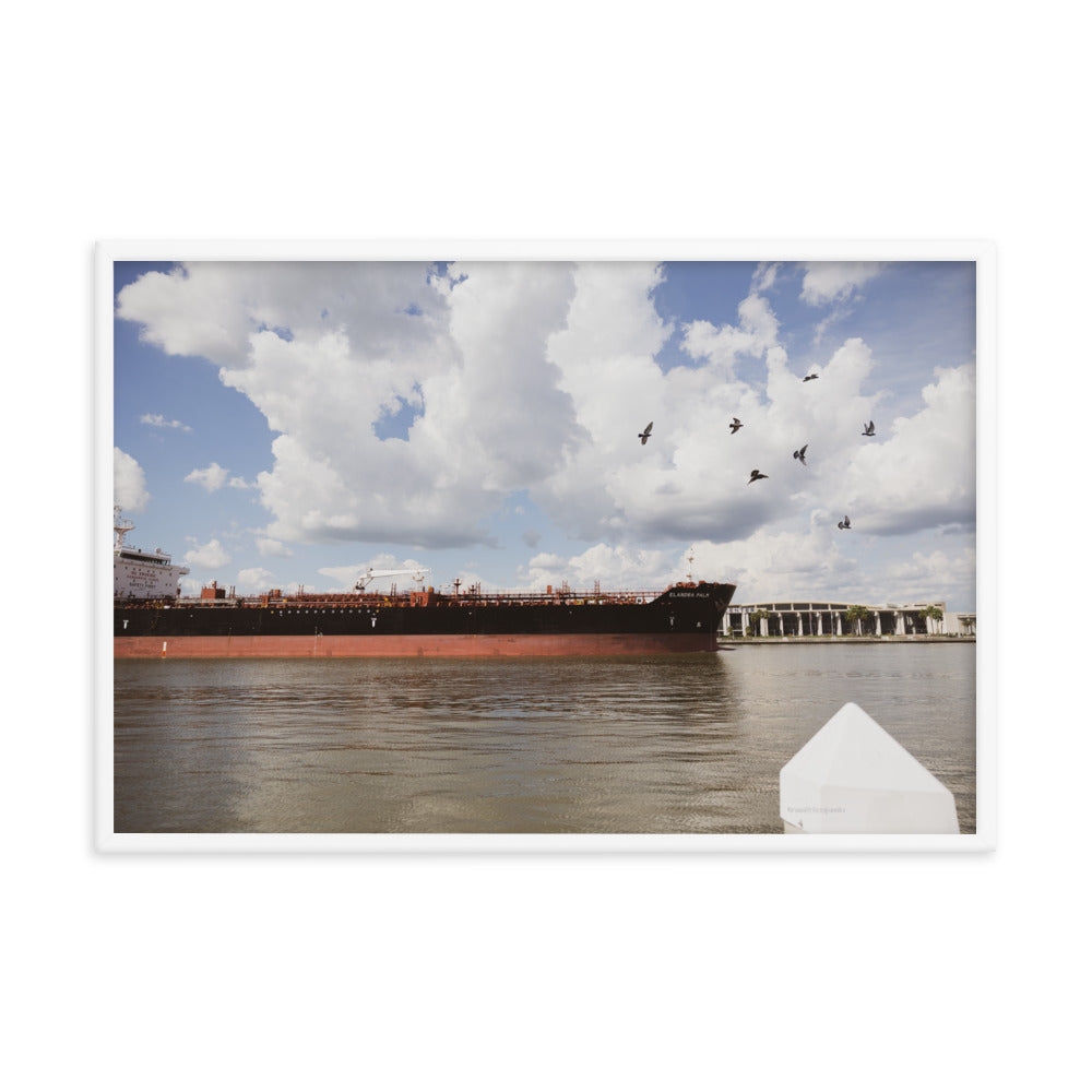 Walking the riverfront in Savannah you're always greeted with cargo ships. This one was riding alongside a group of birds. I saw this jumbo guy coasting towards us from a far (luckily I had my camera!) and I ran down the stairs right from dinner to get close to this ship!