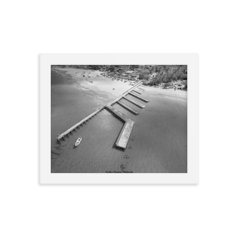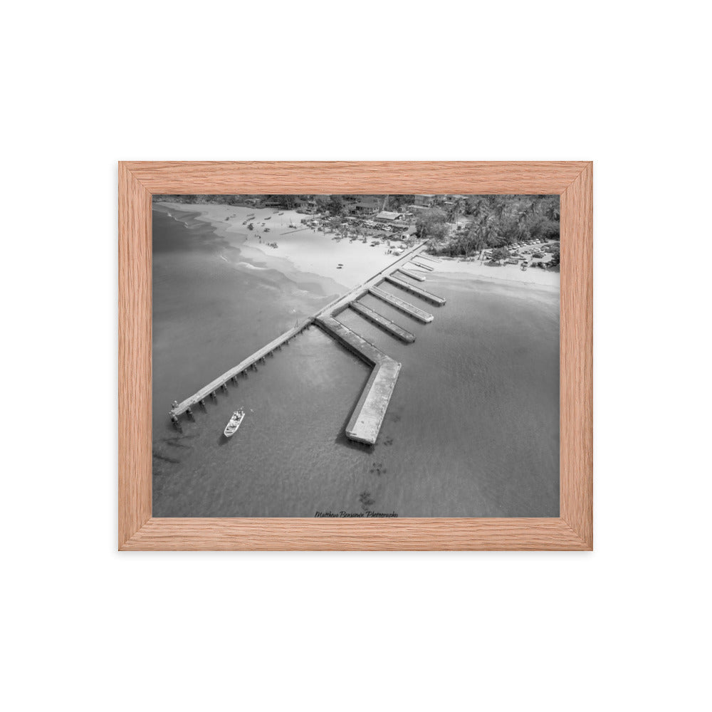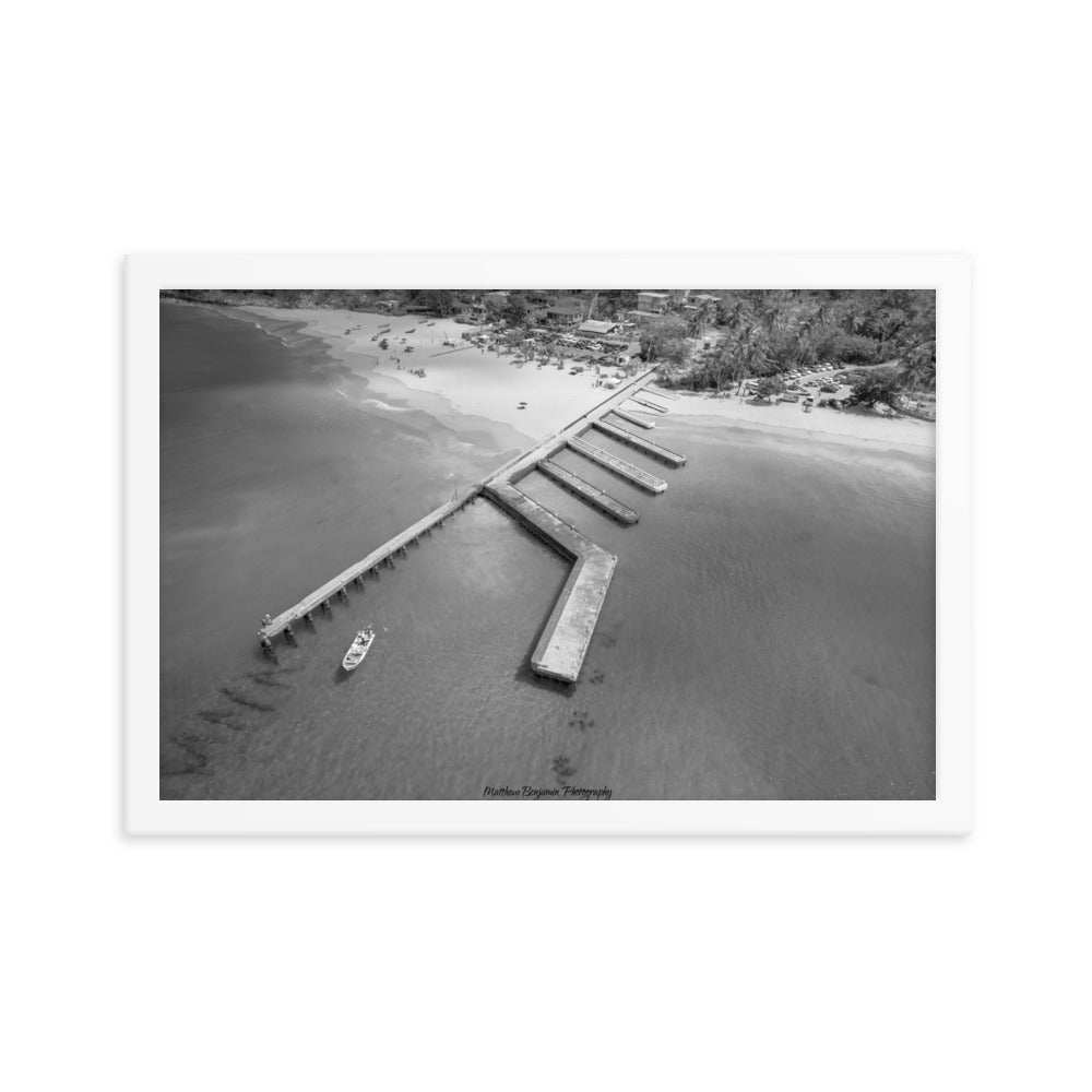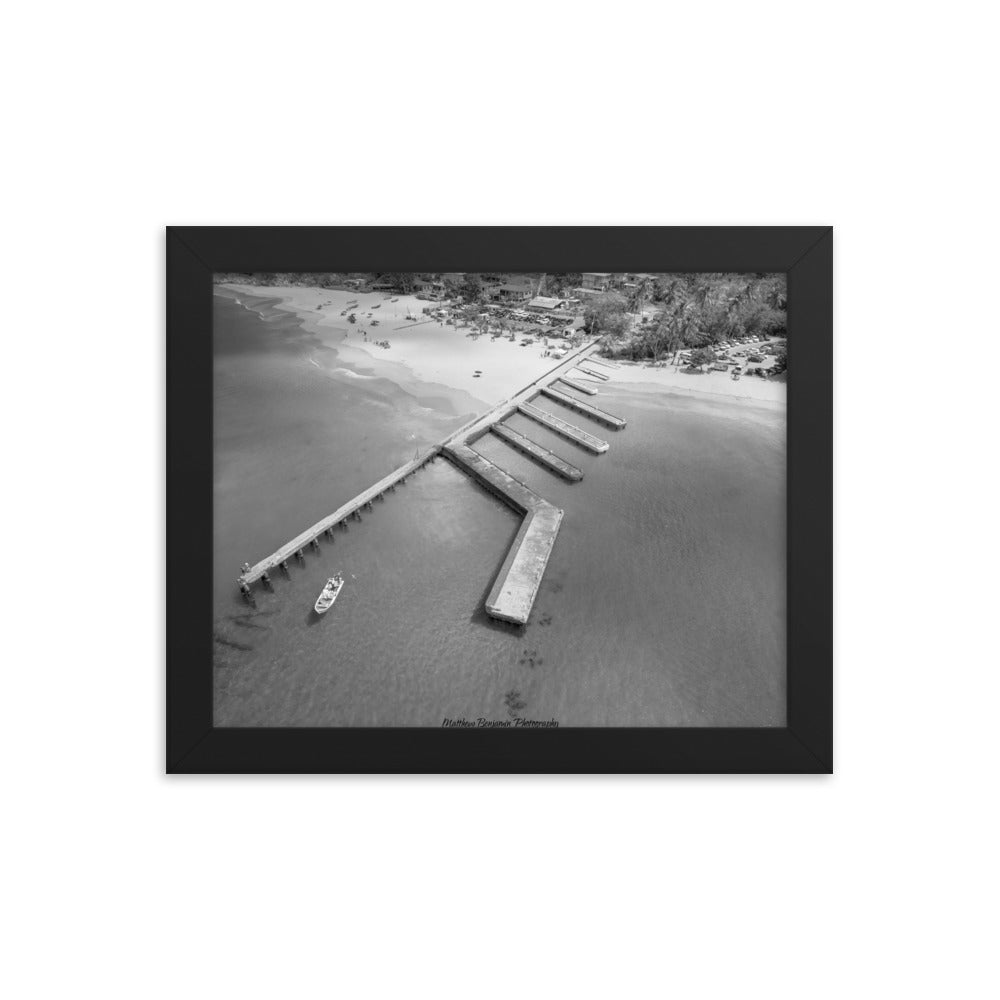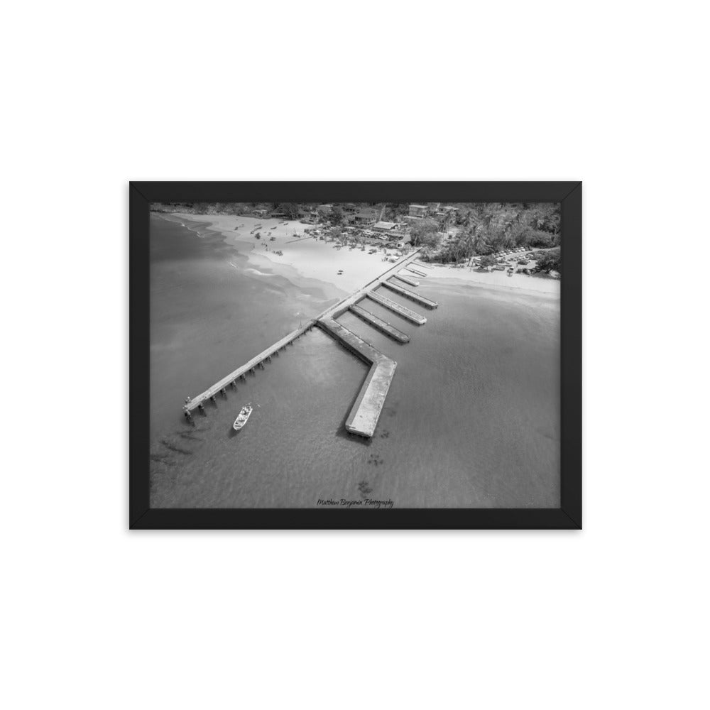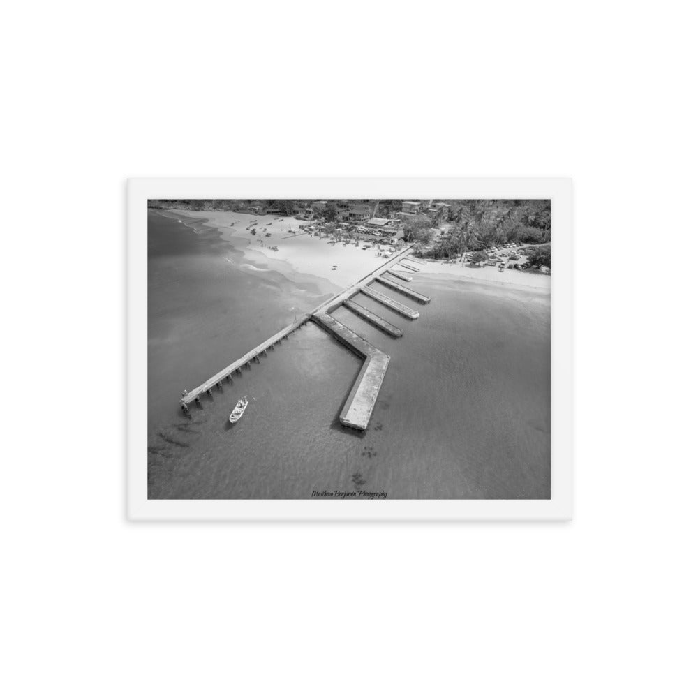 This is by far the most unique boat dock I've seen. This is located on the main island of Puerto Rico. In this black and white rendition you can see the contrast of how clear this water is and remains. This water was teaming with life and activity. I saw fish, crabs, and even human scuba divers! A very cool place to hang. Make a statement in any room with this framed poster printed on high-quality paper, with a partly glossy, partly matte finish.