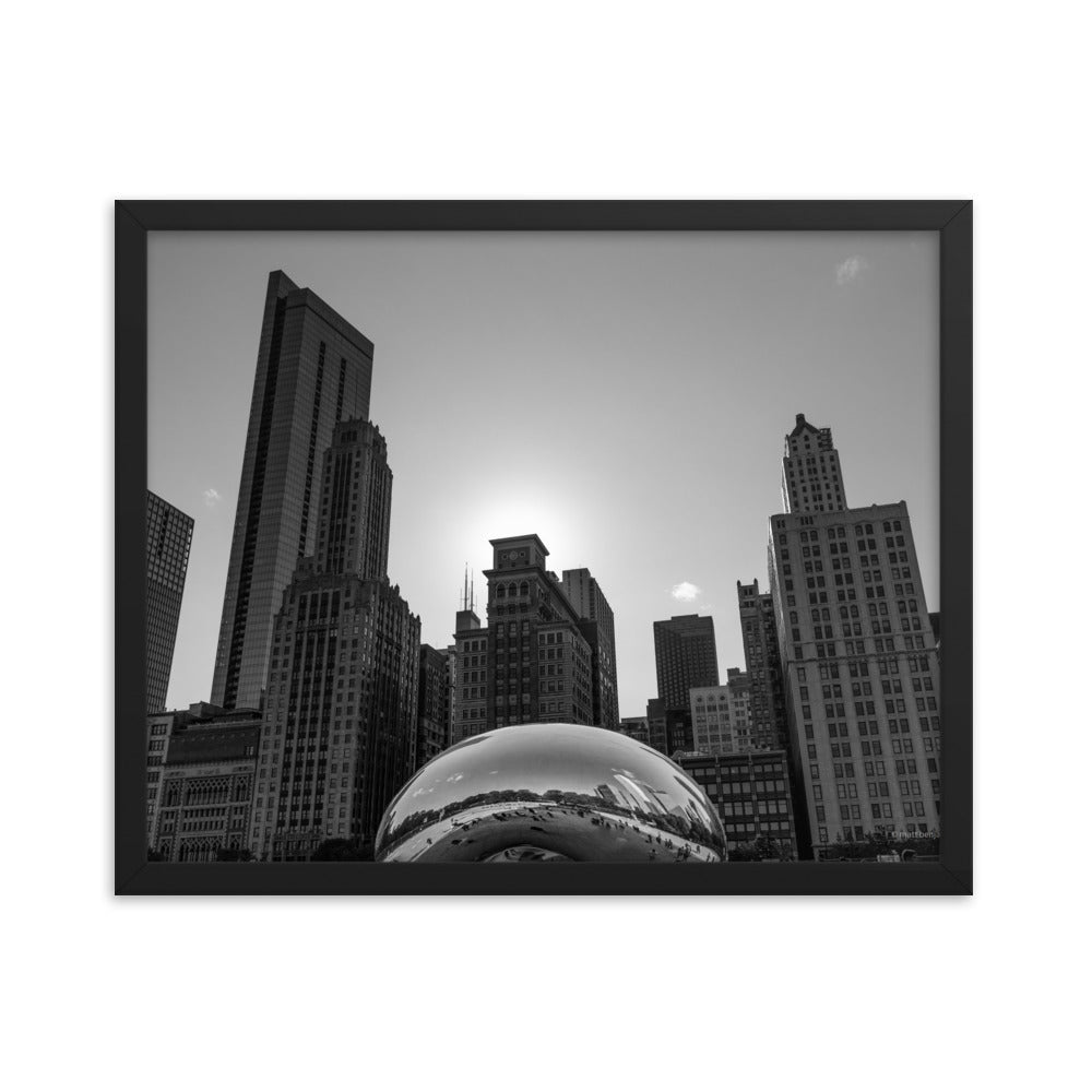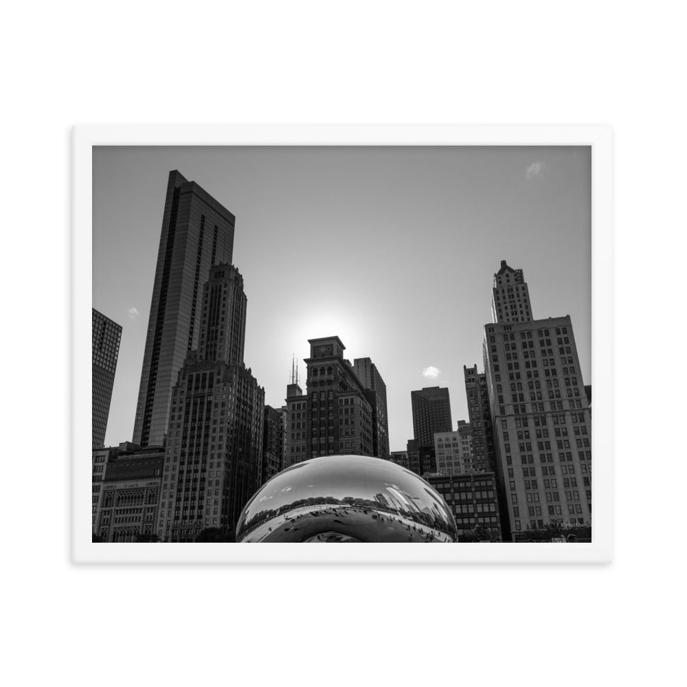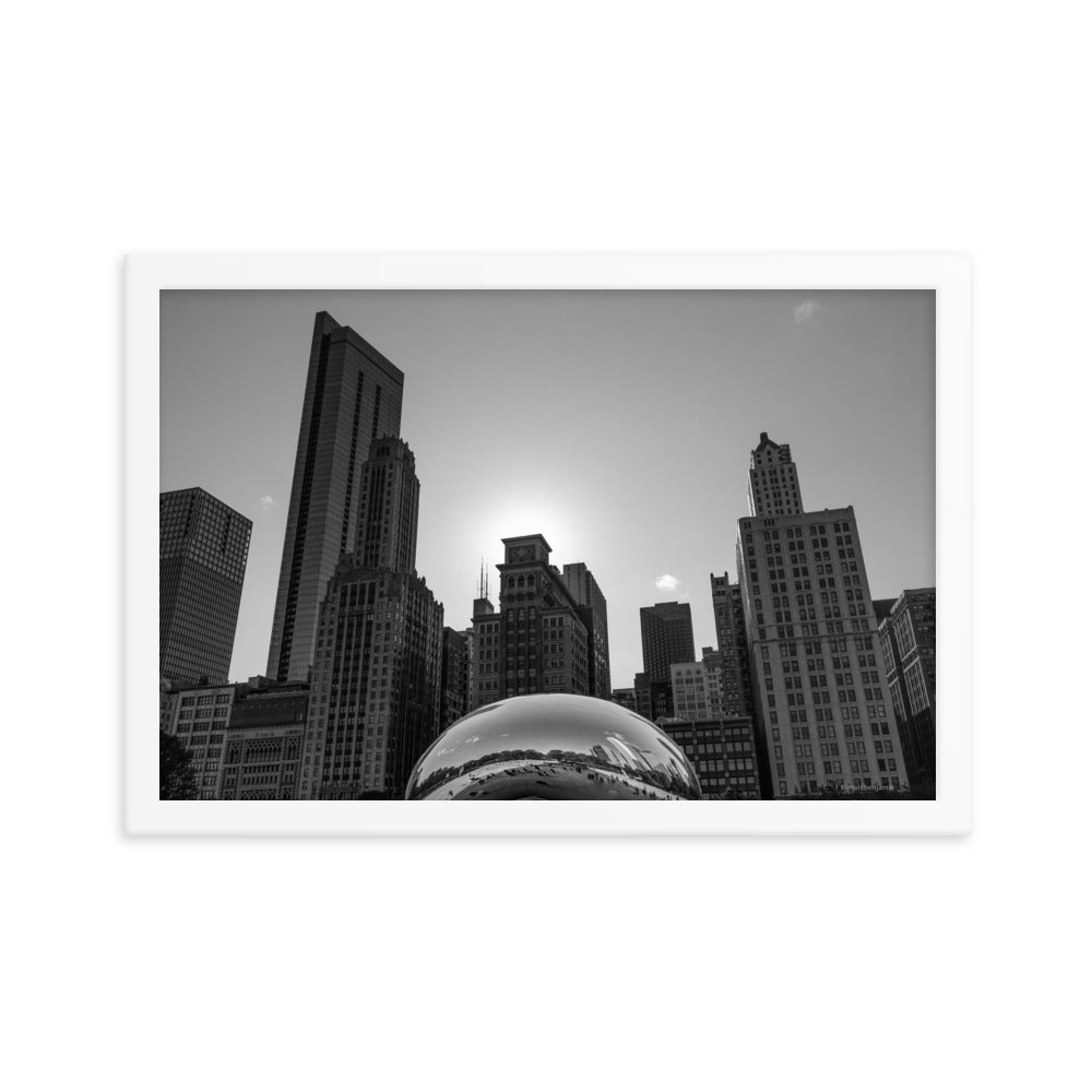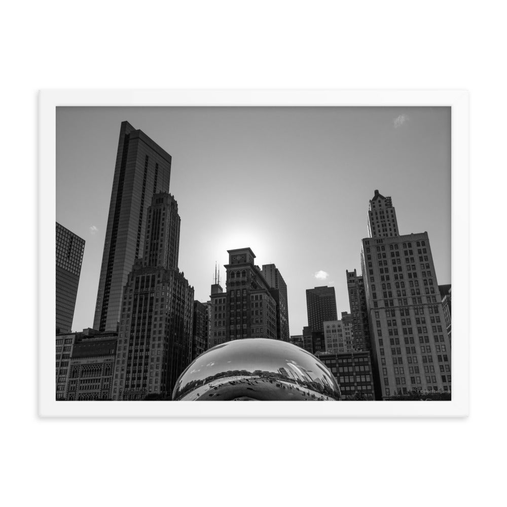 While traveling to Chicago I scaled several rooftops looking for great views. I spotted the infamous Chicago Bean from one of them and went down there to take this picture! Printed on high-quality paper, with a partly glossy, partly matte finish.