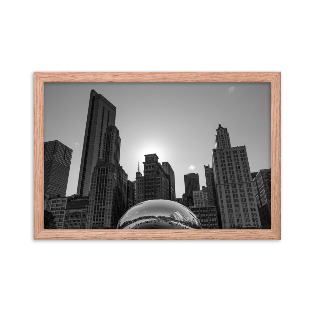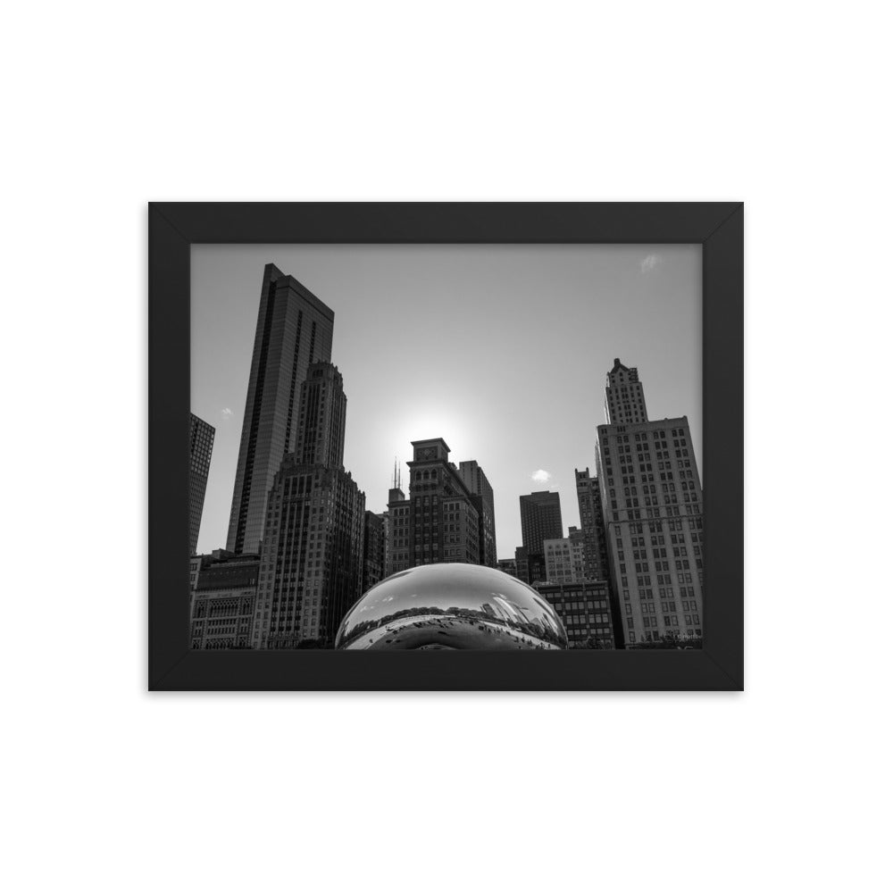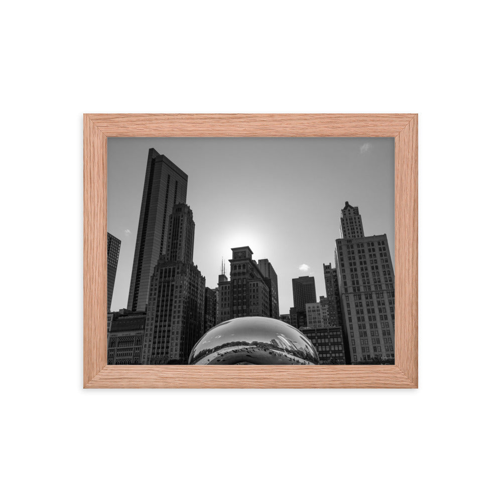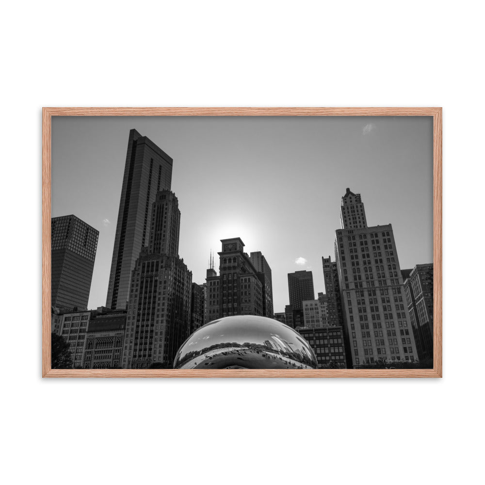 While traveling to Chicago I scaled several rooftops looking for great views. I spotted the infamous Chicago Bean from one of them and went down there to take this picture! Printed on high-quality paper, with a partly glossy, partly matte finish.